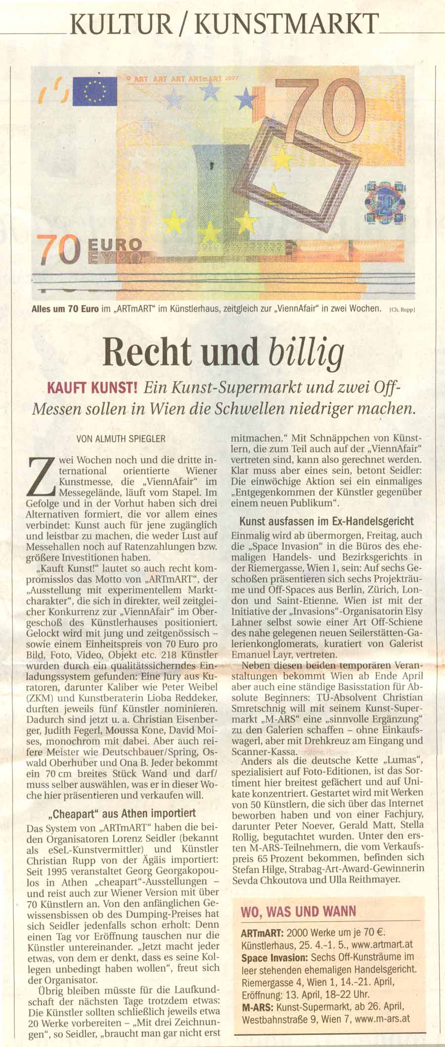 Die Presse "Schaufenster", 2007-04-2 (Link, Bild)